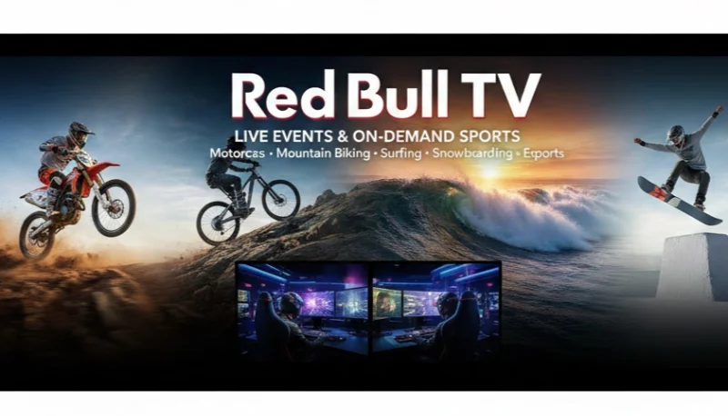 It features live events and on-demand content covering sports like motocross, mountain biking, surfing, snowboarding, and esports.