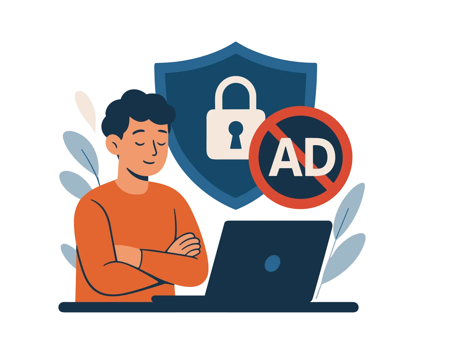 Наслаждайтесь более чистым и быстрым просмотром с встроенной блокировкой рекламы и трекеров.