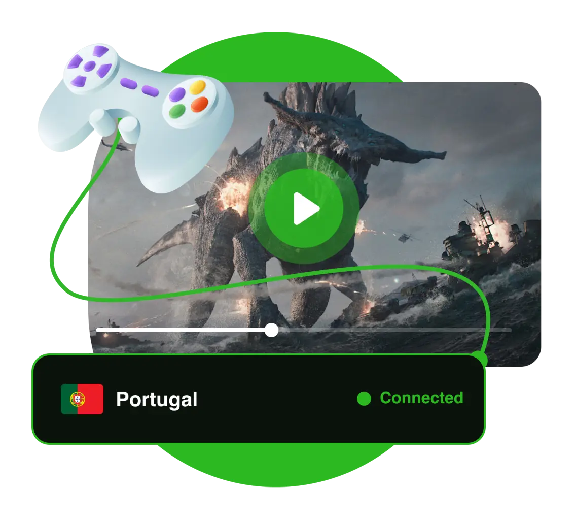 Connect to the best VPN Portugal free servers for safe and fast access to streaming services and gaming. Keep protected with encrypted Portuguese IP addresses!